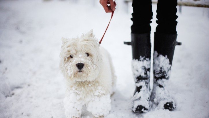 Consider clipping the hair between the paw pads as well as their nails, as snow and ice can often get stuck there, causing discomfort and even frostbite. Less hair in that area means less chance of this happening. Also, inspect the pads for cracks or inflammation. To reduce the risk of these painful conditions, think about applying a paw balm or purchasing a pair of dog boots.