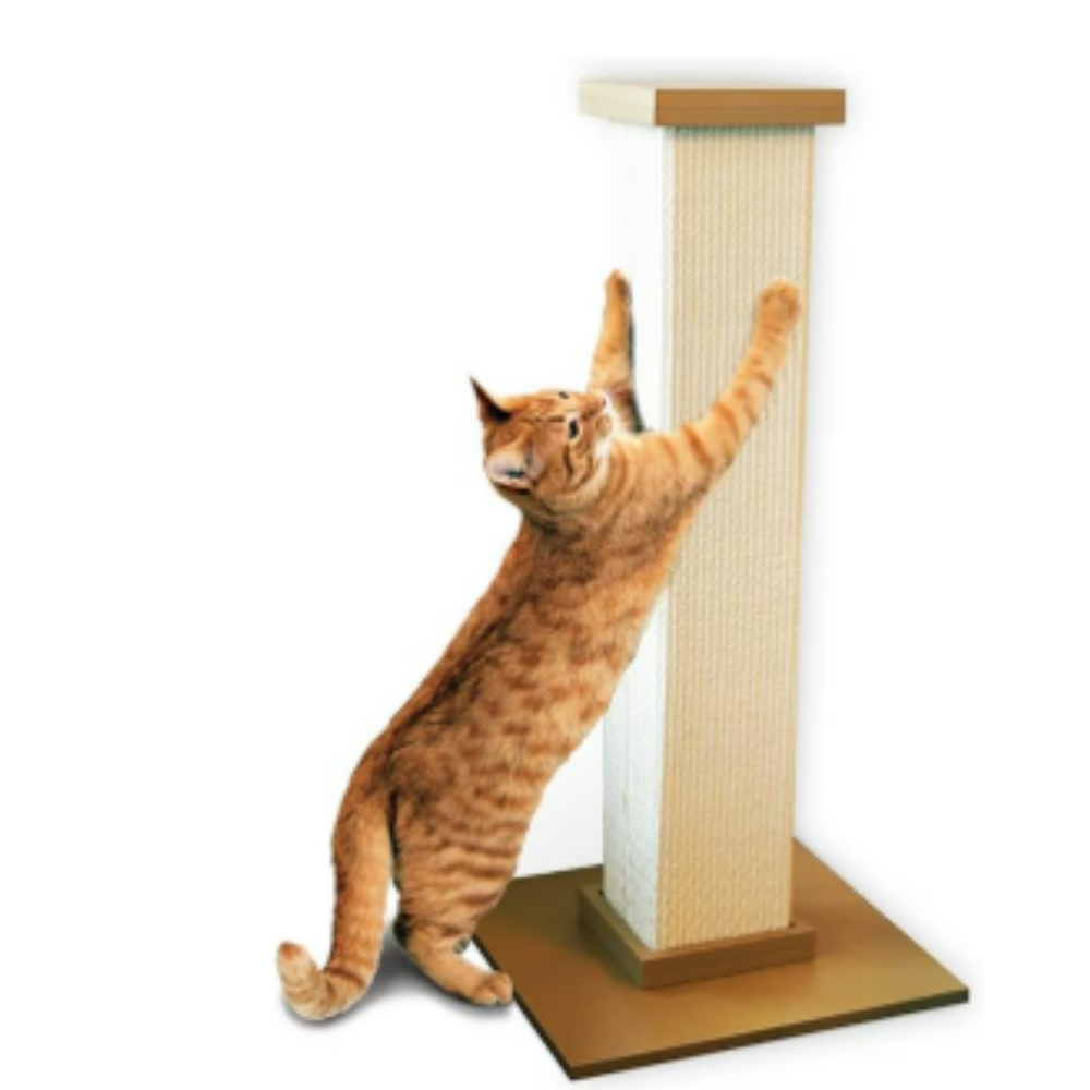 Pet parents are in love with this product, and it’s not hard to see why. This 32-inch post is tall enough to allow larger cats to fully extend their bodies and stretch their muscles while scratching. It also has a sturdy 16 x 16-inch base that stops the post from tipping over.