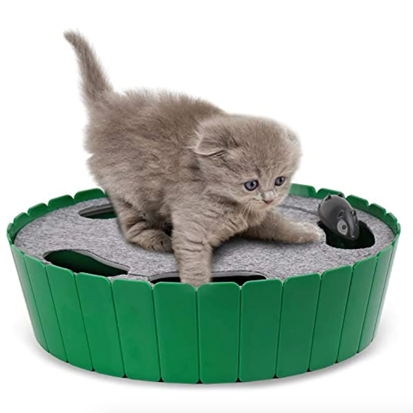 Mimicking the unpredictable hide-and-seek movements of a mouse, this toy features two speed settings to grab and hold your cat's attention.